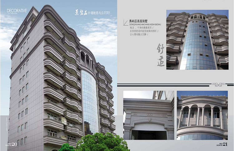 廣泛適用于高檔的樓堂館所、高層公寓、居民別墅等建筑墻面的裝修飾面,更是瓷磚貼面老墻翻新實(shí)現(xiàn)豪華裝修的佳選。